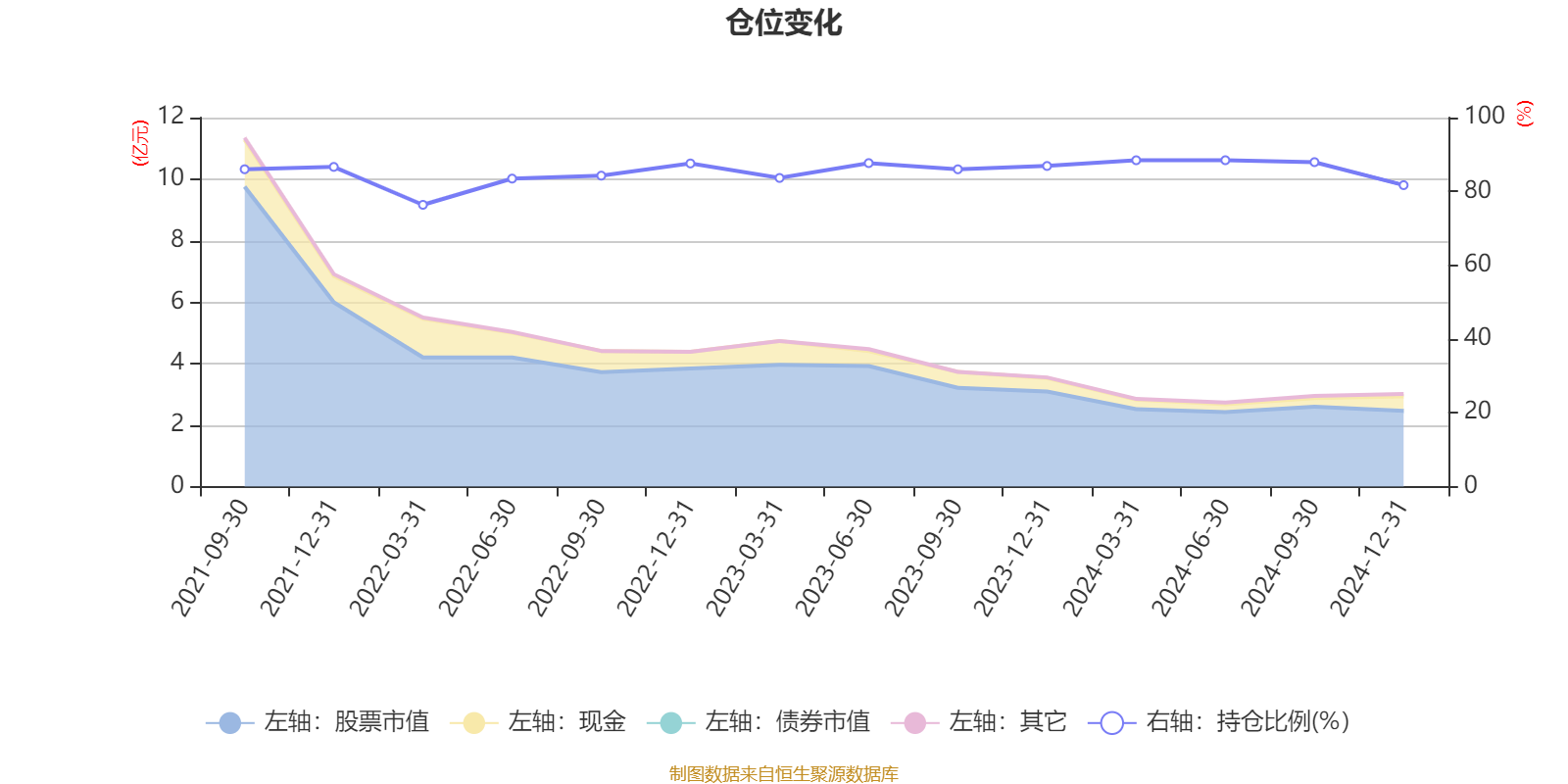 据定期报告数据统计,近三年平均股票仓位为85.2%,同类平均为79.88%。2024年上半年末基金达到88.45%的最高仓位,2022年一季度末最低,为76.36%。