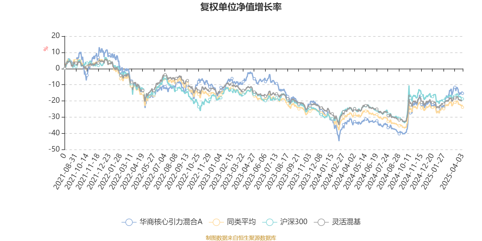 截至4月3日,华商核心引力混合A近三个月复权单位净值增长率为15.86%,位于同类可比基金52/918;近半年复权单位净值增长率为15.09%,位于同类可比基金63/918;近一年复权单位净值增长率为26.14%,位于同类可比基金62/918;近三年复权单位净值增长率为-4.10%,位于同类可比基金270/901。