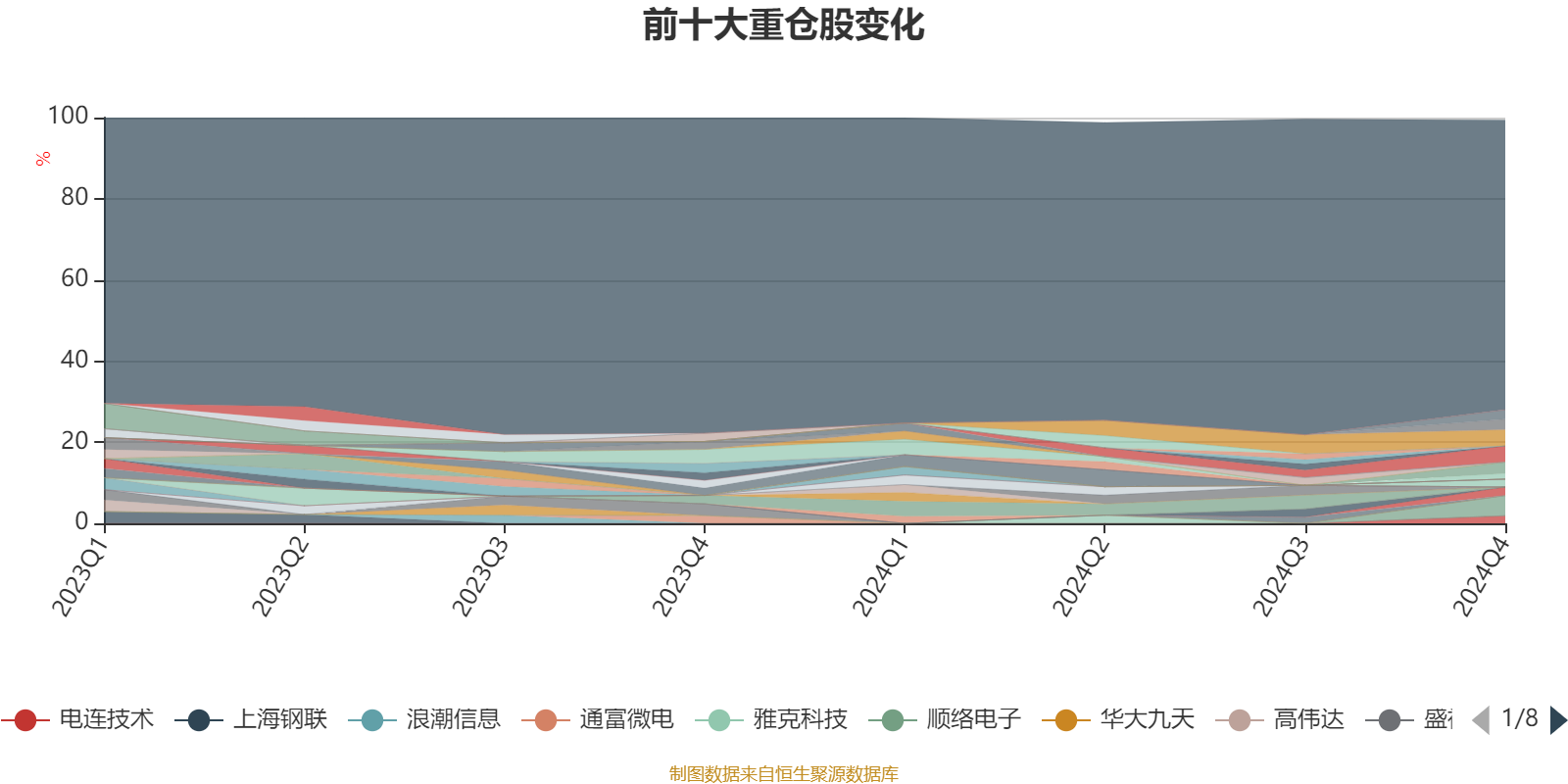 截至2024年末,基金十大重仓股分别是顺络电子、顶点软件、小米集团-W、思特威、名创优品、晶方科技、艾为电子、中芯国际、金风科技、电连技术。